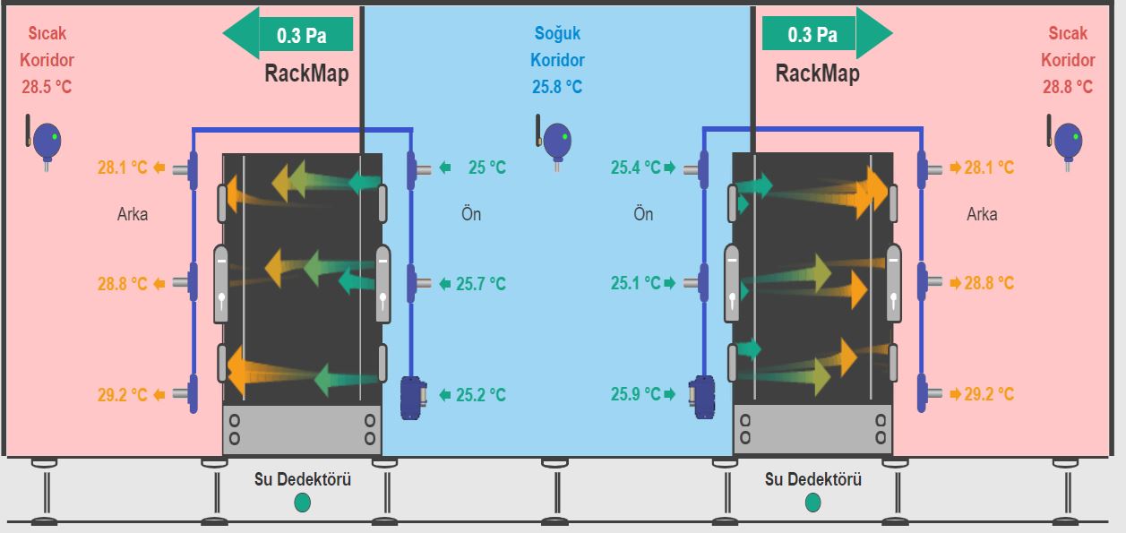 Sıcak ve soğuk koridorlardan gelen havanın karışmamasını sağlamak için kabinin önünde daima pozitif bir basınç olmalıdır. Hava, yüksek basınçlı bölgelerden düşük basınca geçer, verimli soğutma için kabinin ön tarafında daha yüksek ve arkada daha düşük basınç olduğunu kontrol etmek zorunludur.